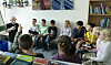 Elevene på tredjetrinn på Hurrød skole sitter i ring rundt ham. Det er tid for musikk, og barna følger fargekodene på flippoveren i takt med musikklærerens instruksjoner.