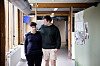 Når runden er over, trenger en av guttene å hvile seg litt. Mikkel følger ham inn på et rom hvor han kan sitte i fred.