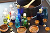 Det er hyggelig å komme til lekerommene om du av og til setter gjenbrukstingene fram som en invitasjon. Tenk å komme til bord som allerede er dekket til teselskap og bamsefest, eller til trollmannens kjøkken der flakonger, kanner og krydderier står klar til miksturmakerne. De siste barna som blir hentet, kan for eksempel lage en invitasjon til de som kommer tidlig neste morgen.Foto: Trude Anette Brendeland
