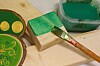 Synes du de trehvite klossene kan bli kjedelige og trauste? Da kan du farge noen av dem med tynn maling. Velg flytende vannmaling (som Stockmar) eller vannbasert, giftfri hobbymaling og tynn den litt ut med vann. Da har du en glimrende beis som trekker inn i treet og gir klossene en god overflate som ikke oppleves kald eller glatt.Foto: Trude Anette Brendeland