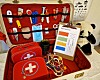 Inspirasjon: Inviter en gruppe med barn til en koffert stappfull av sykehus-rekvisitter og bøker om kroppen! Åpne, se, les og lek! Språkutveksling garanteres.