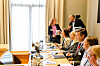 Ann Mari Milo Lorentzen diskuterer med advokat Endre Lien i Utdanningsforbundet under høringen på Stortinget.Foto: Bjørn Asle Grimstad