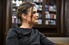 Hun blir stille et øyeblikk, noe hun ofte gjør, som for å ta en ekstra runde i hodet før hun svarer.