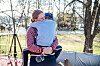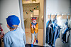Mens lillebror Olav for lengst har begynt å leke, er avskjeden med mamma ekstra vanskelig for Eivind. Han holder avskjedsklemmen lenge.