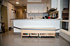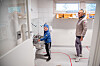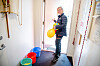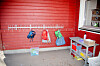 Ett og ett barn får gå inn og vaske hender. Når kysten er klar, går Aksel inn og vasker sine. Lukten av grønnsåpe slår en idet man går inn i barnehagen.