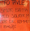 Mens de foregående kommunikative handlingene tilbyr noe til leseren, handler denne siste om å dirigere leseren. Det betyr at den krever en handling fra mottakeren (Semundseth et al. 2024). I denne sammenhengen er det personalet som har laget tekster for å kreve noe av foreldrene, som for eksempel å smøre barna inn med solkrem (Figur 7). Det gjør de enten gjennom direkte krav med bruk av imperativer, verb i presens og modale hjelpeverb eller med indirekte krav, hvor kravet må tolkes i lys av konteksten (Figur 6).