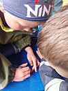 «Nå faller den!» utbryter et barn med skrekkblandet fryd som observerer at sneglen er faretruende nær en sprekk mellom bordplankene. Et annet barn følger engasjert opp: «Den strekker seg jo, han rekker over, han holder jo seg med halen òg!». Sneglen kommer seg over på utrolig vis og har nå sju ivrige barn som publikum. En voksen spør om de skal lage en hinderløype til sneglen. Barna starter umiddelbart med å lage sneglehinder av små og større steiner. Sneglen går gang på gang over steinene og synes ikke å vurdere lettere alternativer for sin ferd over bordet. Sneglen er ustoppelig, men det er barna også. Et kort settes på høykant og sneglen begynner å klatre rett oppover kortet. «Å nei, den kommer sikkert til å skli ned med slimet» roper et barn med skrekk i stemmen. Barnet som fant sneglen, funderer: «Lurer på hvordan den skal komme seg over kanten av kortet?». «Den skjærer seg sikkert» kommer det hurtig fra et tredje barn.