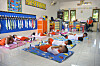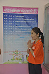 Klasserommet er velutstyrt. Alle har sine egne hyller, skuffer og knagger. Store fargerike plansjer henger på veggene. De skal lære om dyr, mat, trafikk og andre land. Over lærerens plass henger bilde av kongen av Thailand, slik det også gjør i alle de andre klasserommene.
