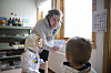 Barna lærer også om hvordan man lever som astronaut. Rundt bordet sitter skolestarterne og snakker om hunden Laika som russerne sendte ut i verdensrommet på femtitallet.
