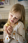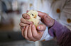 Men nå er det lenge til kyllingene skal spises, og inne på kjøkkenet koser Tiril og Sofie med de små fuglene, og stryker varsomt over de gule fjærene.