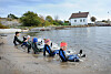 Da Første steg er til stede, bader alle de sju førskolebarna i sjøen ved Møvigstranda. Først opp av vannet er Fride Eikli Lossius (5).