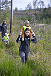Da Første steg er med på tur, vil Tyra Valkyrie Dahlstrøm med sine knappe to år gjerne leie en voksen, men hun går mesteparten av turen selv. Storebror Theon Christoffer Dahlstrøm (3) er opptatt av alle bærene som er modne, og styrer Emilie forklarer forskjellen mellom tyttebær- og blåbærlyng.