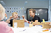 «Ett to, ett to, en støvel og en sko», lyder det unisont, før barna deles på fire stasjoner. De skal male, klippe ut og lime, tegne og modellere ett-tall og totall.
