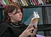 Hun har en manga-bok i fanget. En etter en forsvinner ungdommene inn i historiene sine.
