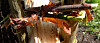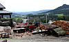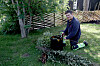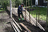 Små furutrær blir til staur – gjerdestolper. Skigardens mest synlige deler, de lange skiene, lager han av grantrær som han hugger i skogen. Trærne kløyves i fire deler, i fire skier. Du kan se flere bilder i karusellen nedenfor.