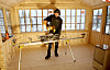 Han har byttet ut råteskadet tømmer, gulvbjelker og gulvbord, bygd nytt inntil den gamle konstruksjonen og slipt fram igjen de gamle tømmerveggene.