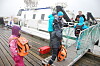 Ventetid: Johanne (7) leker med en gutt på kaia på Givær. Båten som skal kjøre dem til skolen på Helligvær, er i ferd med å legge til. Flere voksne og barn er også på kaien.