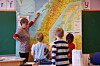 En til en: Vegard får instrukser fra rektor Nelly Eide, som denne dagen underviser småskoletrinnet.