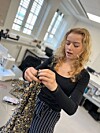Tiril lager et korsett for en burlesque-artist, mens Marta arbeider med detaljer på en sommerkjole. Eksamen er organisert slik at minst 50 prosent av sømarbeidet skal gjennomføres på eksamensdagen. I en slik setting er det lett å fylle dagene i forberedelse med både tegning, beregning, testing og første del av sømarbeidet.