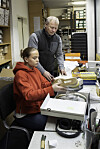 Litt lenger oppe i Oldenburg sentrum finner vi Karianne Mobekk (17), omringet av skoesker fra gulv til tak. Hun åpner en og en eske, tar ut papiret i skoene og fester prislapper på rett sted. Så settes esken på plass i hyllen etter produkt, størrelse og farge.