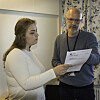 – Det er litt nerver! Kandidatene Cathrine Svendsen og Therese Kristiansen gjør seg klar til den innledende dagen av fagprøven, der de også får utdelt den skriftlige oppgaven. Der skal de lage en plan de skal følge under den praktiske delen dagen etter. Therese er lærling på Furusethjemmet, mens Cathrine går dobbeltkompetanseløpet HYSK, som står for yrkes- og studiekompetanse Helsefag. Dette har ført til at hun har vært på flere lærlingsteder og nå den siste tiden på føde- og barselavdelingen på Ullevål sykehus.