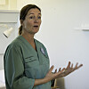 – Det er mye kommunikasjon i faget, og vi skal også se at de kan håndverket, sier Monica Aleksandersen. Fordelen med en markør er at det ikke krever samme pasientsikkerheten som på et sykehus.
