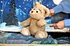 Veslebjørn kan gjøres enda mer levende ved at du klipper i liten åpning i bakhodet og trer helt inn en pinne som gjør at du kan styre hodet. Lim igjen hullet i nakken med limpistol. Limer du også en pinne inni den ene hånden, får du straks mer liv i bamsen. Da kan den vri på hodet, vinke og røre på armen. Øv deg på å gi liv til Veslebjørn med stemme og fakter og lag en enkel regi. Da kan vintermørket bare komme, for dere kan åpne en koffert og slippe stjernelyset inn.