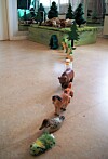 barnehagen og oppdage dyrene i lang, lang rekke på vei til et sted. Hvor er de på vei – til tegnebordet for å stå modell, eller til jungelmiljøet som er laget under bordet? Annet type lekemateriell kan også presenteres i lang, lang rekke som pussige karavaner. Det kan for eksempel være en rad av sko på vei inn i en kjempestor pappeske på småbarnsavdelingen, klosser som peker i retning nye prosjekter, eller fruktkasser i rekke som togvogner fra kjøkkenet til avdelingen.Trude Anette Brendeland