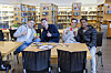 Blant elevane på idrettsfag verkar interessa for teoretiske fag å vere litt større. Tobias Grotle Herstad, Johan Stensvoll Mikkelsen, Njord Norman Leversund og Bahram Abrham Daniel sit på skulebiblioteket. Dei er nett ferdige med fotballtrening. Men også dei skulle gjerne hatt litt fleire fag å velje mellom.