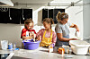 Lærer Tove Klausen lager svelerøre sammen med Sigrid og Kreetta, begge ti år.