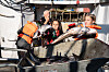 Alisa (10) og Kristine (13) har dratt garn og kaster fangsten opp i en trillebår.