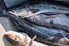 En sjark er på vei inn, og de har fangst! En elev piler ned på flytebrygga med ei trillebår, og straks kastes sei, torsk og uer opp i den.