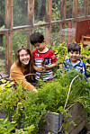Barnehagen har også en kjøkkenhage der barna sår frø og dyrker alt fra neper og rødbeter til gulrøtter, tomater og urter.