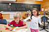 Førsteklassingene ved Byskogen skole i Tønsberg leker sykehus, butikk og hauk og due. De tegner og bygger togbane. Så godt fungerer leken at selv Høyre heier.