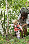Men følelsen av å bære sin egen sekk, med drikkeflaske og bleie i, gå i ulendt terreng, følge stien, kjenne lett regn mot huden, plukke pinner, oppdage naturskatter, studere meitemark og se larver kravle på bladene – den er den samme, også på korte turer.