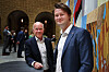 Han stiller opp i vandrehallen i Stortinget sammen med Øystein Mathisen fra Arbeiderpartiet for å understreke at det er enighet på tvers av politiske skillelinjer om å legge tydelige føringer for kommuner og fylkeskommuner når de skal ansette lærere i fremtiden.