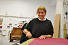 – Jeg har et svennebrev i kjole og drakt og likte best å sy da jeg startet her, mens jeg nå liker mest den tradisjonelle biten med snøring og modellering. Mengdetrening er viktig, og det tar tid å få det inn i fingrene. Vi har prøvd veldig mange teknikker, og vi får jobbet veldig selvstendig. Det er ingen som henger over oss, sier Marianne, som er veldig fornøyd med å være ansatt.