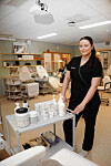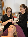 Elevene i hudterapifaget har egen lærer i kommunikasjon, og de har også lærerike besøk av leverandører.