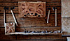 I verkstedet har han også kopi av en del av Urnesportalen som han har gjenskapt til urnes stavkyrkje, kopien bygger på arbeider som ble gjort om lag år 1070.