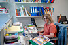 – De egenskapene har jeg litt av selv, sier han, nå i fullt trav til kopimaskinen, enda en maskin han kan ha et litt anstrengt forhold til.