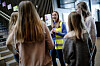 I første pause trer hun på en gul vest og tar en inspeksjonsrunde. Fire jenter kommer bort og spør om det er siste dagen hennes. Hilde nikker.