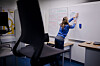 – Jeg har alle tre åttendeklassene, sier hun og begynner å skrive ned dagens oppgaver i engelsk på tavlen.