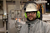 Vi går opp en bratt trapp og inn til kontrollrommet i støperiet til Hydro Sunndal. Der møter vi Øyvind Andersen. Han har det svært travelt. Han tar et raskt blikk på dataskjermene for å følge med produksjonen, før han går ned på gulvet i fabrikken.