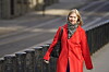 Kunnskaps- og integreringsminister Guri Melby (V) p spasertur i Oslos gater tirsdag formiddag.
