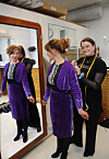 En skuespiller kommer og skal prøve et antrekk, det skjer ikke tilfeldig. De har en nøye kjøreplan, og tider er booket inn. I et eget prøverom med store speil blir klærne vurdert, og nåler festet.
