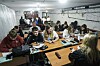 En tidligere fuktig og mørk kjelleren er blitt pusset opp med strøm, ventilasjon og nytt gulv. Men det er ingen vinduer i lokalet, der murpussen har sprukket opp flere steder og stygge rør henger i taket. Lyspærene som henger fra taket gir et skarpt lys.