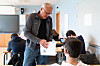 – Du ser det veldig fort at han er klar og engasjert i timane. Han vil alltid legge til rette for alle elevane. Nokre gonger kan han ha litt gammaldagse metodar å undervise på, seier Smelvær smilande.