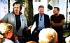Lærer Håvard Tjora fikk med seg KrFs Anders Tyvand og SV-leder Audun Lysbakken på litt uteskole. Foto: Jørgen Jelstad.