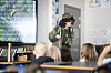 Med parykk og skjerm skaper Mari skriveglede for førsteklassingene
